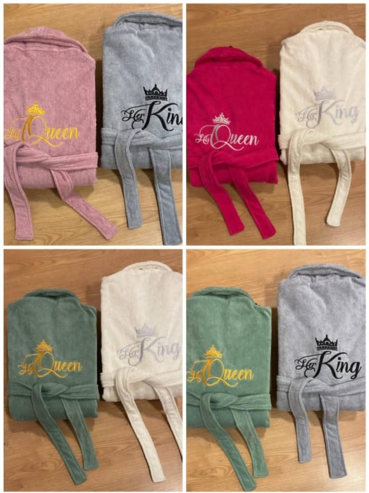 الوصف: روب حمام جاكادينا المطرز مصنوع من القطن الخالص المعالج ، عالي الامتصاص ، ناعم علي الجلد ، متعدد الألوان ، مقاوم للانكماش.