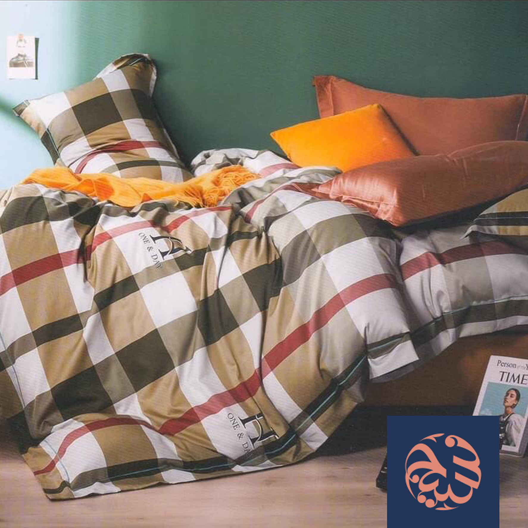 طقم لحاف مصنوع من القطن فتلة 60 متخيط كابوتنيه جاهز للاستخدام و محشي ميكروفايبر ، الطقم مكون من 6 قطع (لحاف+ملاية+ 4 كيس خددية) ، تركيز النسيج : 500 عقدة ، الخامة : قطن ناعم