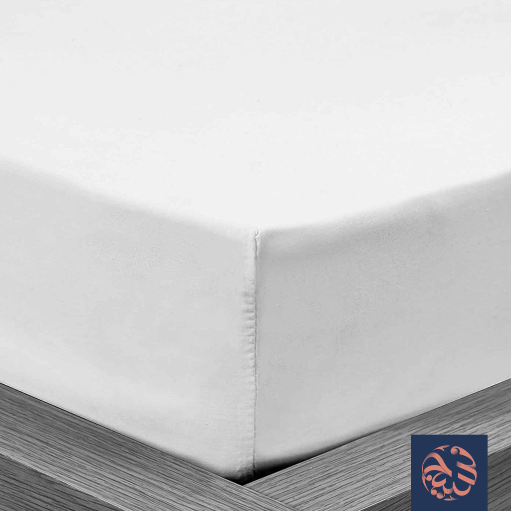 طقم ملاية سادة مثبتة (مخلوط 20% + قطن 80%) ابيض - مقاس 160×200 سم
