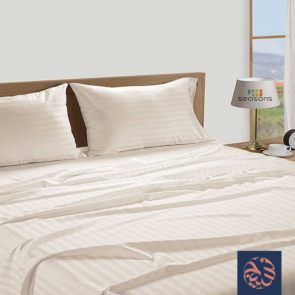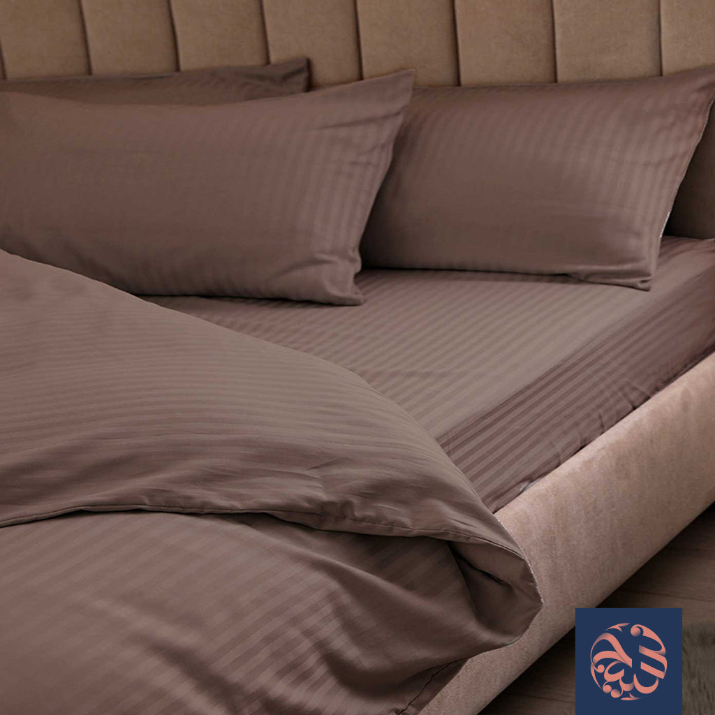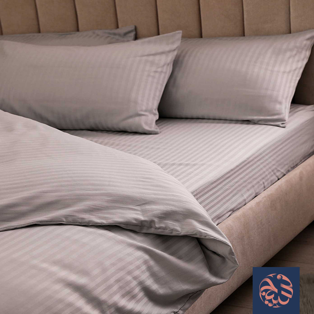 طقم ملايه مقلم مخلوط مثبته، تجمع بين راحة القطن ومتانة البوليستر.
