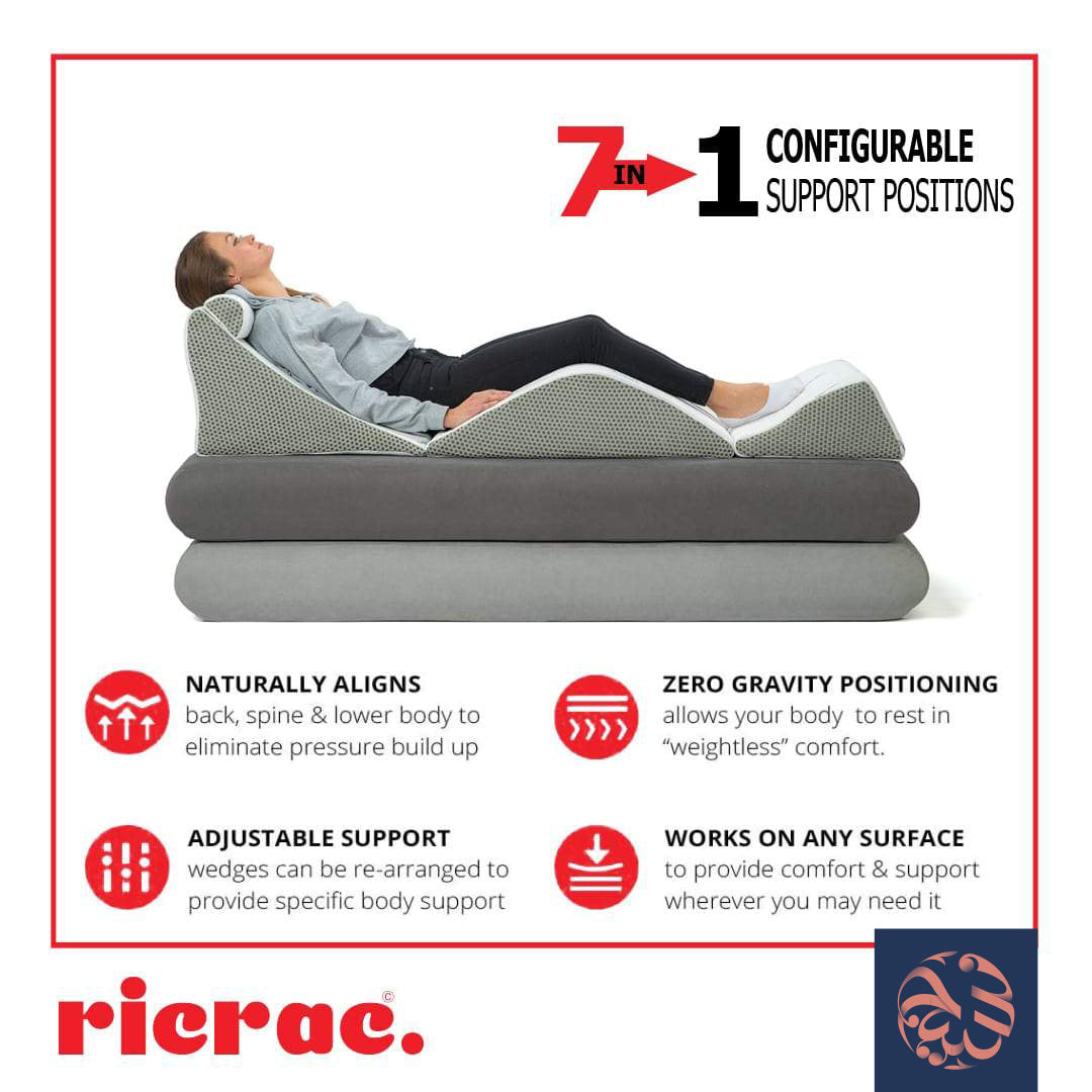وصف: تتكون ريكتال - وسادة لتقويم العظام لكامل الجسم من 4 أسافين إسفنجية منفصلة، وبفضل تصميمها الفريد من نوعه بسحاب، يمكنك استخدام أسافين هذه الوسادة معًا أو بشكل منفصل