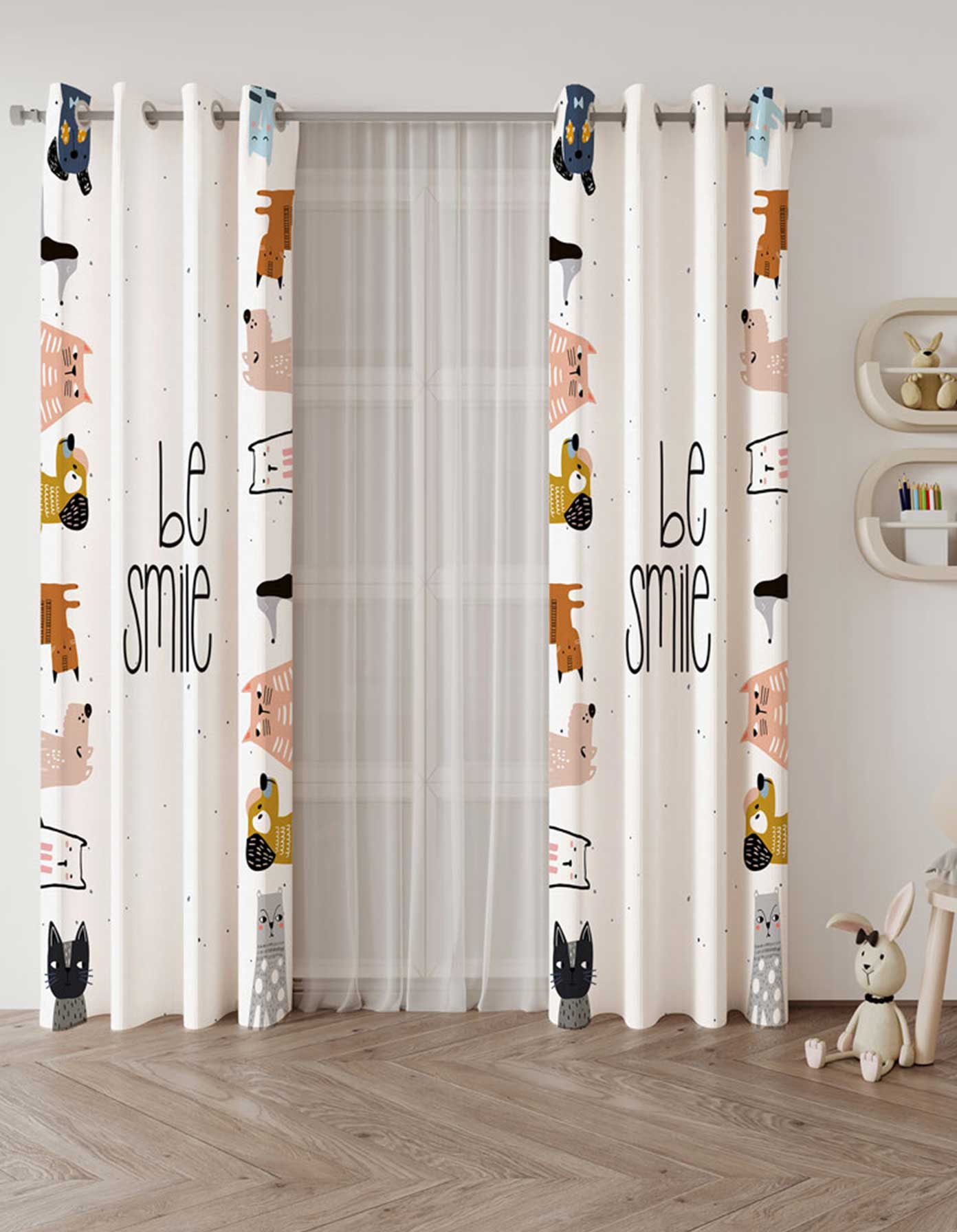 ستارة جاهزة أنيقة بتصميم حديث تفصيل حلقات كبس، بحجم 270x275 سم.