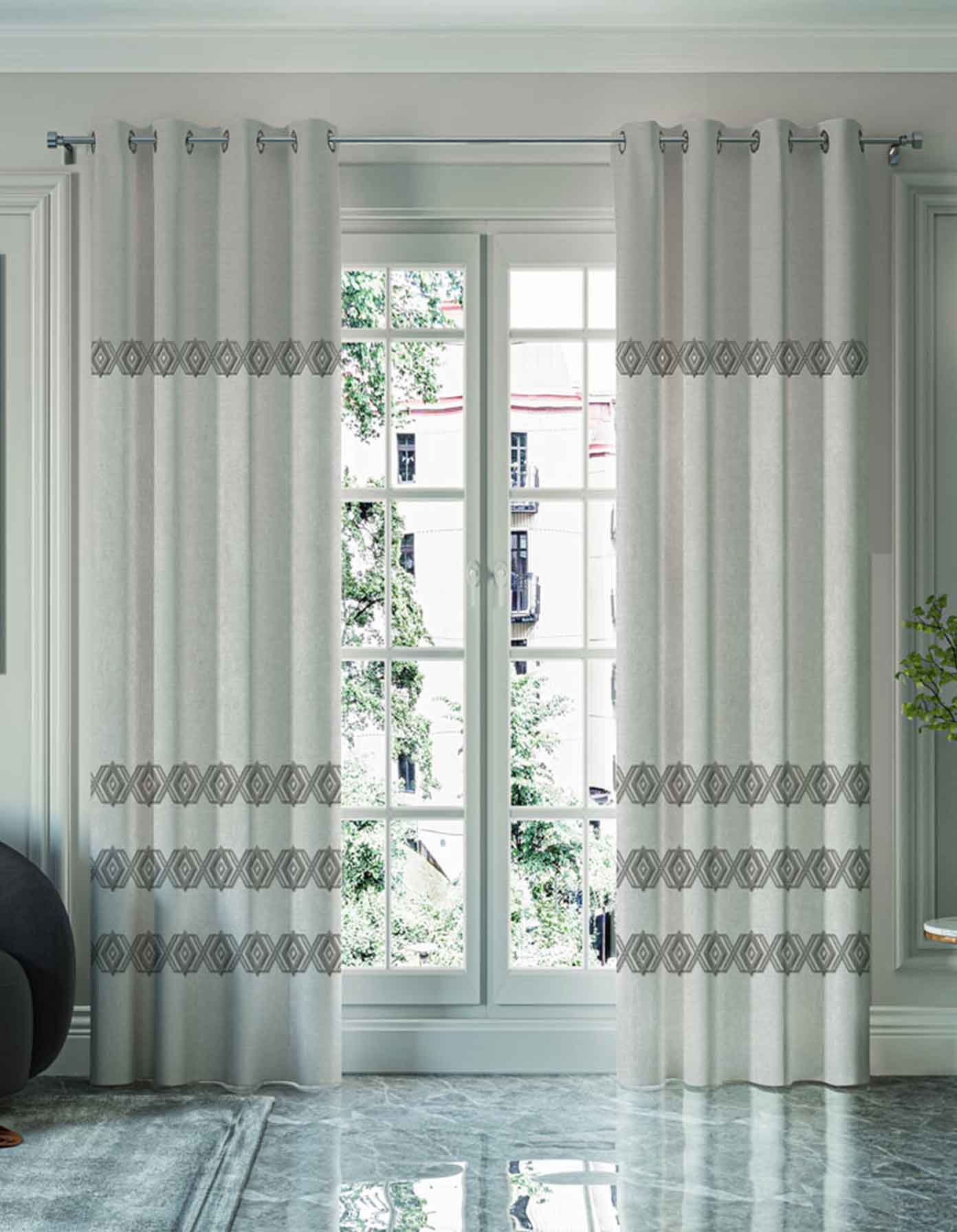 ستارة جاهزة أنيقة بتصميم حديث تفصيل حلقات كبس، بحجم 270x275 سم.
