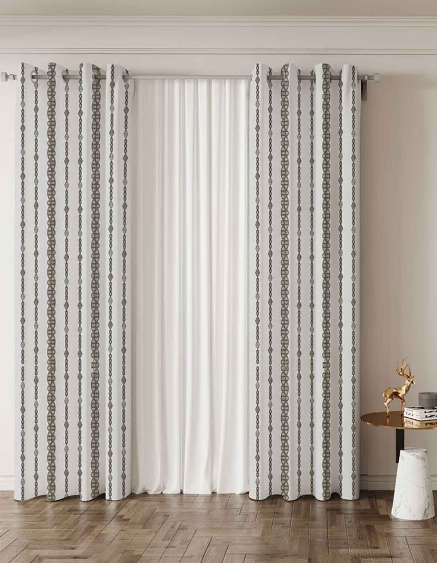 ستارة جاهزة أنيقة بتصميم حديث تفصيل حلقات كبس، بحجم 270x275 سم.
