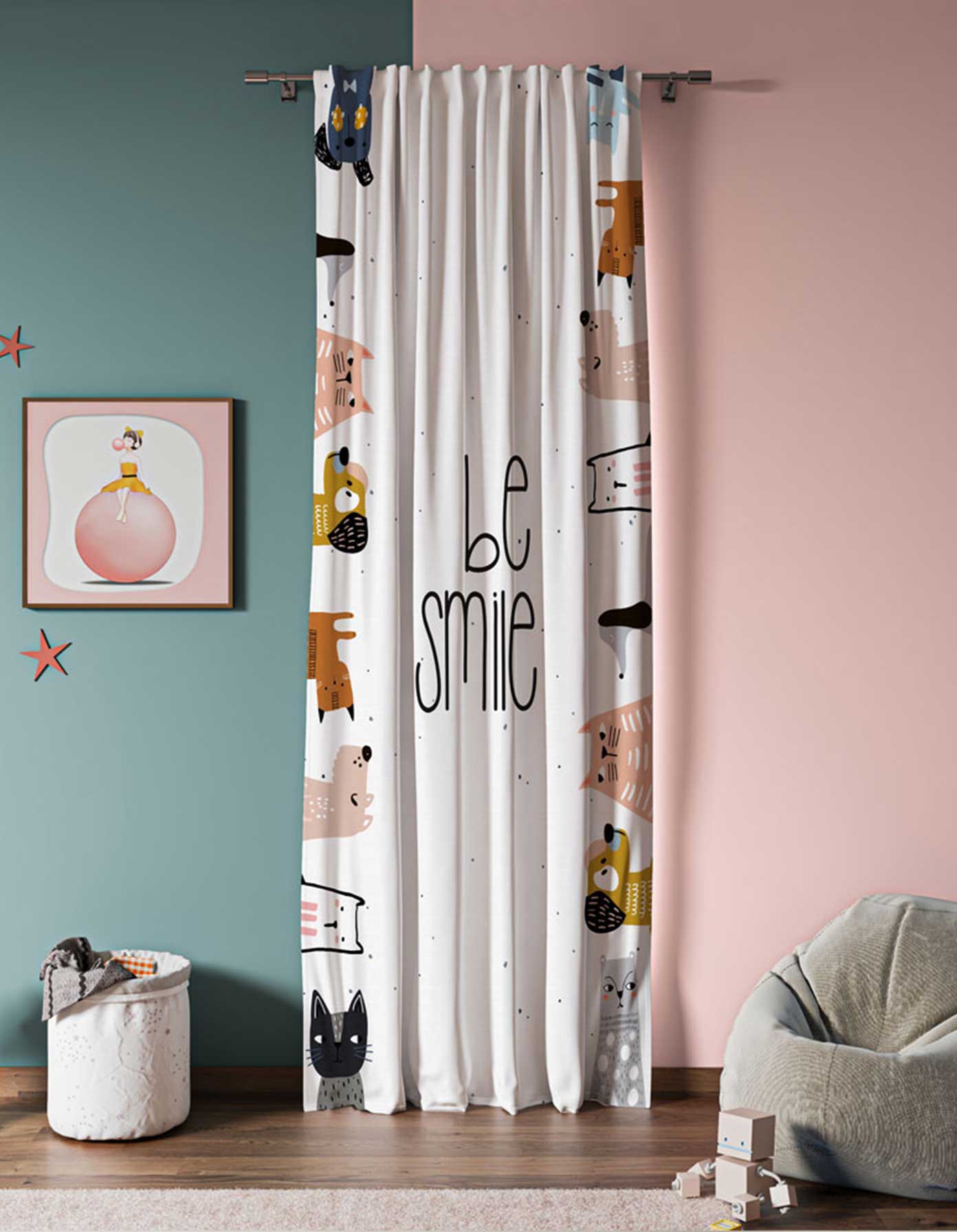 ستارة مطبوعة أنيقة تفصيل بشريط خلفي، توفر تركيبًا سهلاً وبحجم 135x275 سم.