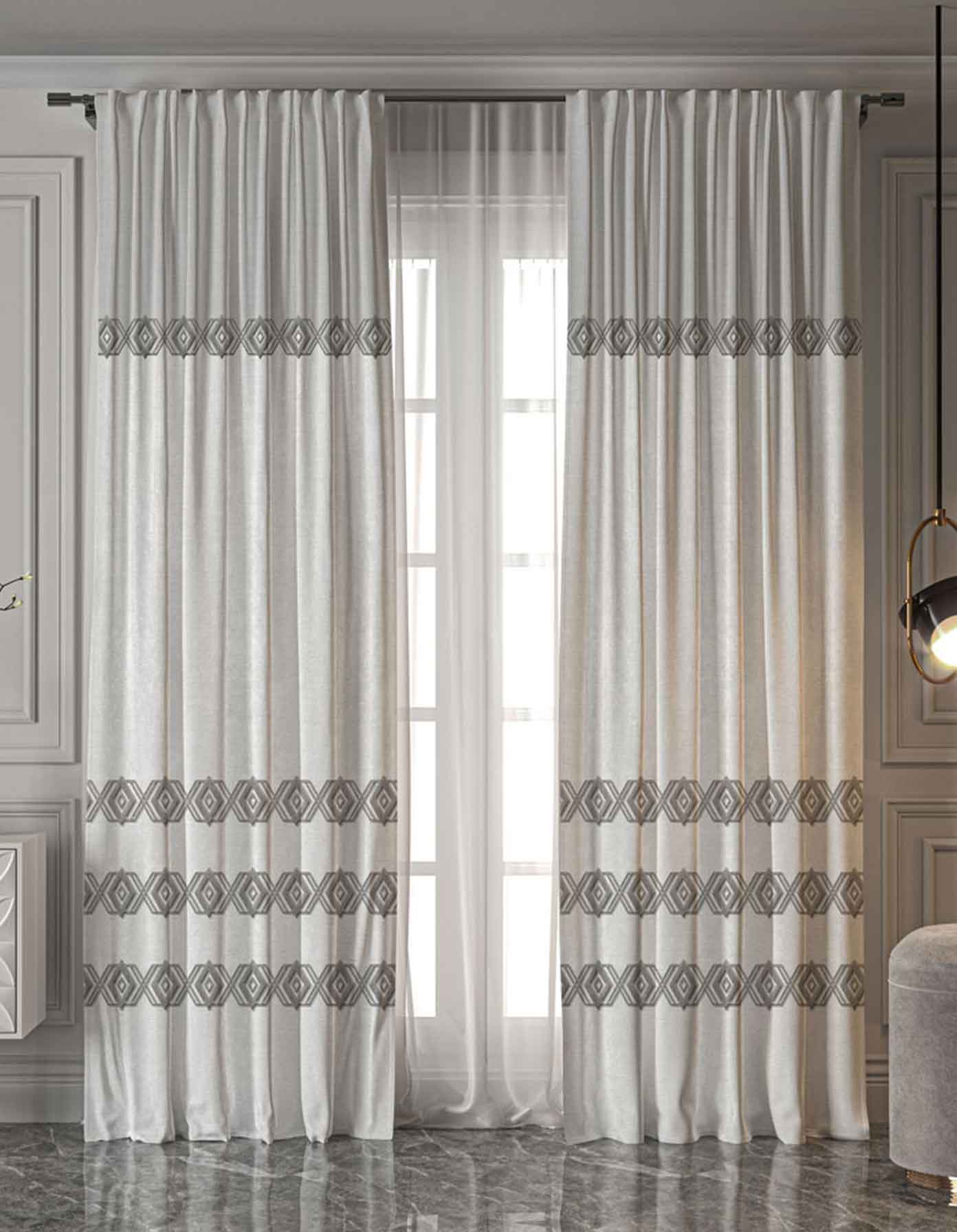 ستارة مطبوعة أنيقة تفصيل بشريط خلفي، توفر تركيبًا سهلاً وبحجم 270x275 سم.